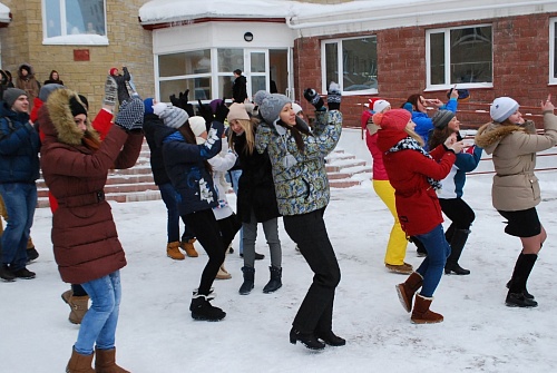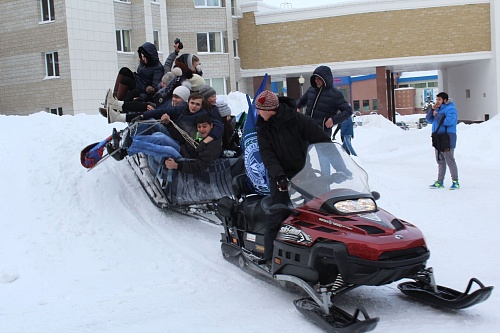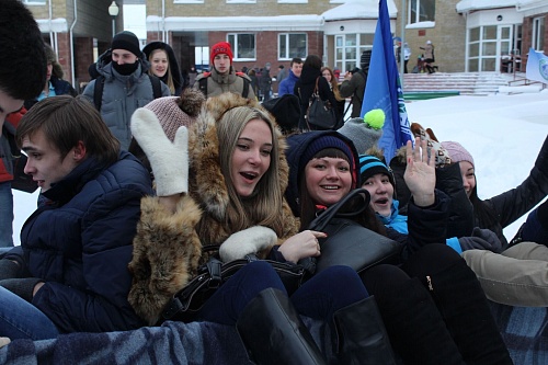 Горячий чай, сушки, плюшки, народные гуляния и катание на санях – неотъемлемые атрибуты празднования Дня студента в нашем университете – пополнились танцевальным флеш-мобом и «кругом почета» на снегоходе.