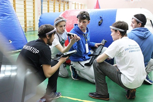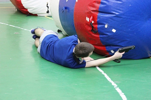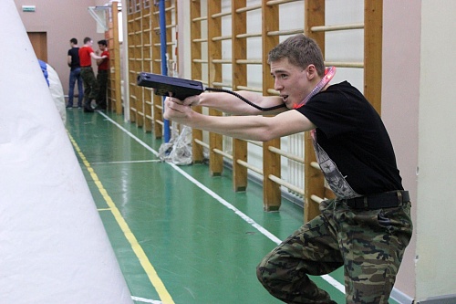 Лазертаг. Настоящее сражение развернулось в спортивном зале школы. Одни шли на прорыв, другие продумывали стратегию. Лазерный обстрел завершился победой «Экстремалов» и «СВ».
