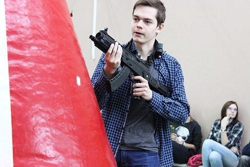 Сборка и разборка автомата. На этом этапе лучшие результаты были зафиксированы у Мансурова Тимурджона и Никитина Павла.