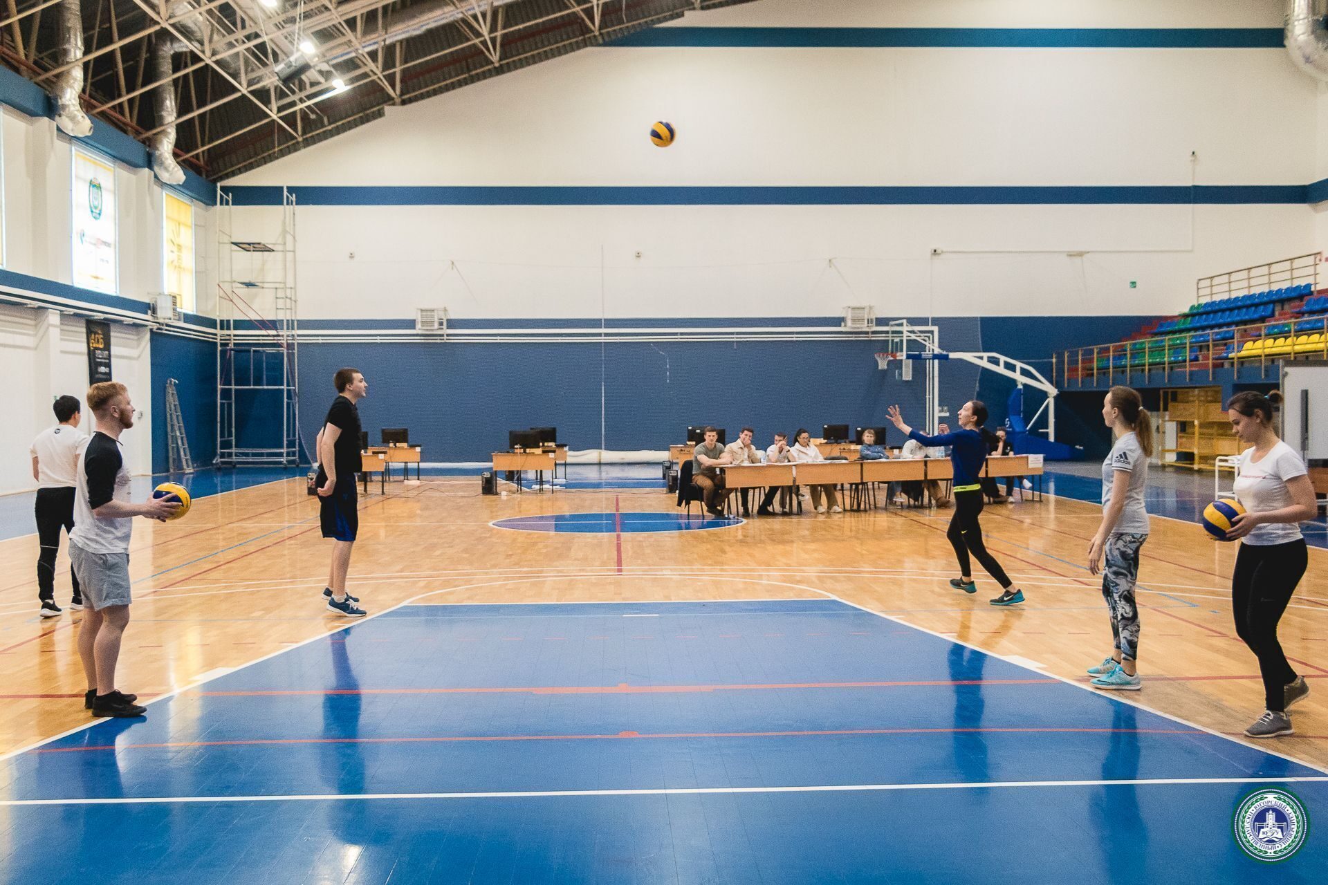Так, например, первая подгруппа проводила урок физкультуры по футболу, а вторая по волейболу. В роли учеников выступают сами студенты группы, прошедшие испытания или те кому предстоит сдавать экзамен в другой день.