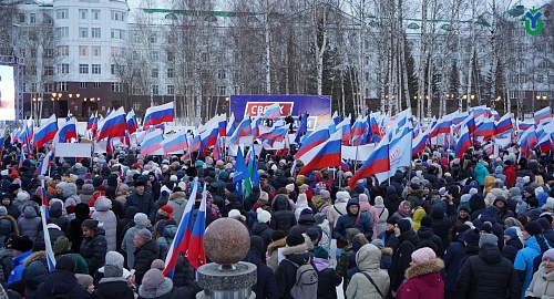 Несколько сотен студентов и сотрудников Югорского государственного университета присоединились к акции в поддержку национальной солидарности #Россия_Мы и посетили митинг-концерт «Крымская весна», посвященный Дню воссоединения Республики Крым и Севастополя с Россией.