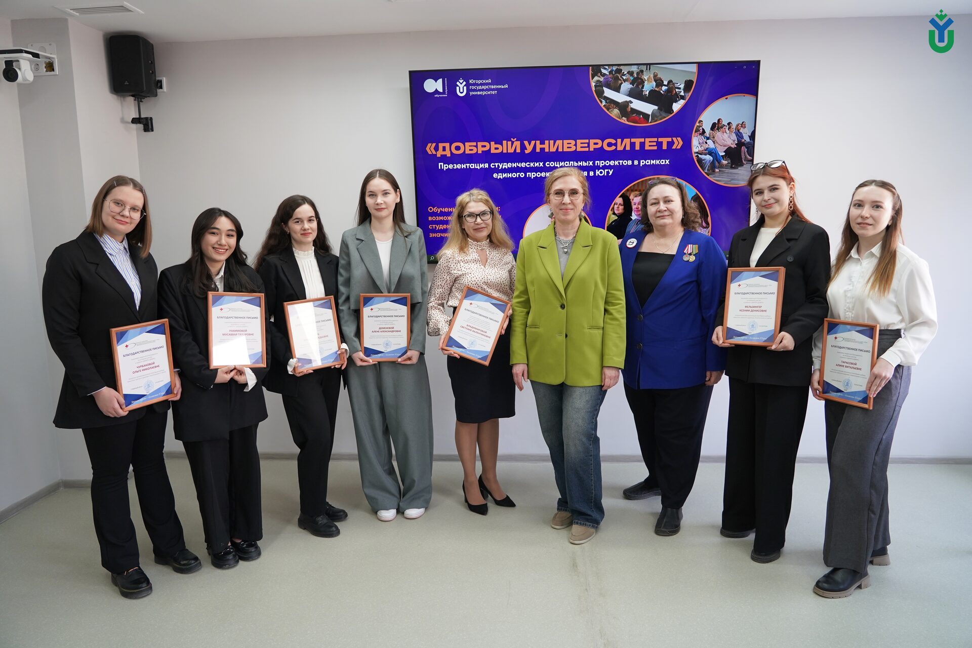 Второй год студенты Югорского государственного университета по заказу наших социальных партнеров совместно реализуют общественно значимые проекты и уже стало доброй традицией заслушивать результаты их проектной работы, отмечать благодарностями и чествовать студентов, особо отличившихся при работе над проектами, а также благодарить партнеров за проявленный интерес и возможности сотрудничества.