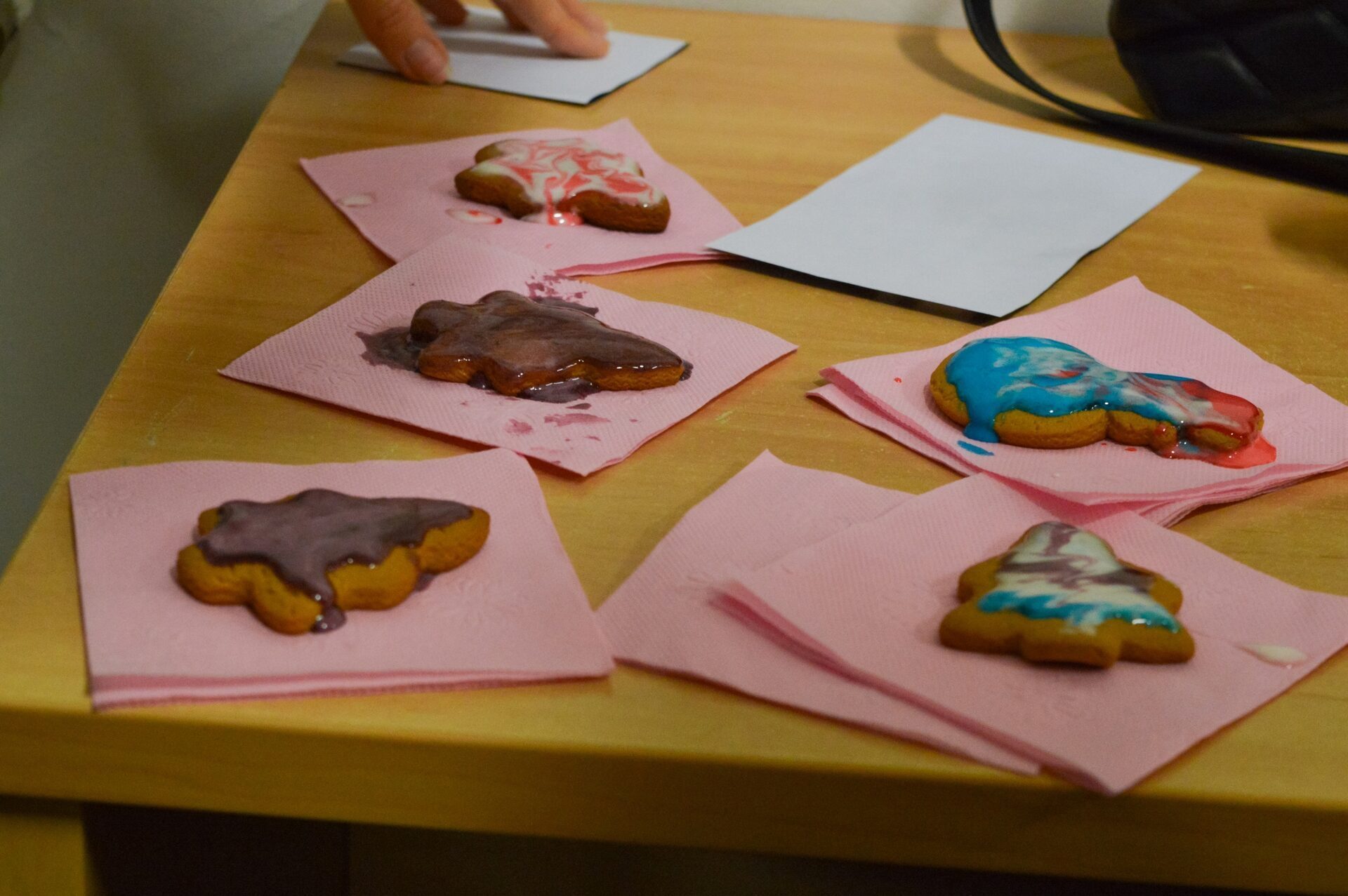 Для пряников поставили несколько цветов глазури: фиолетовый, белый и студенты придумывают самые различные узоры и рисунки.