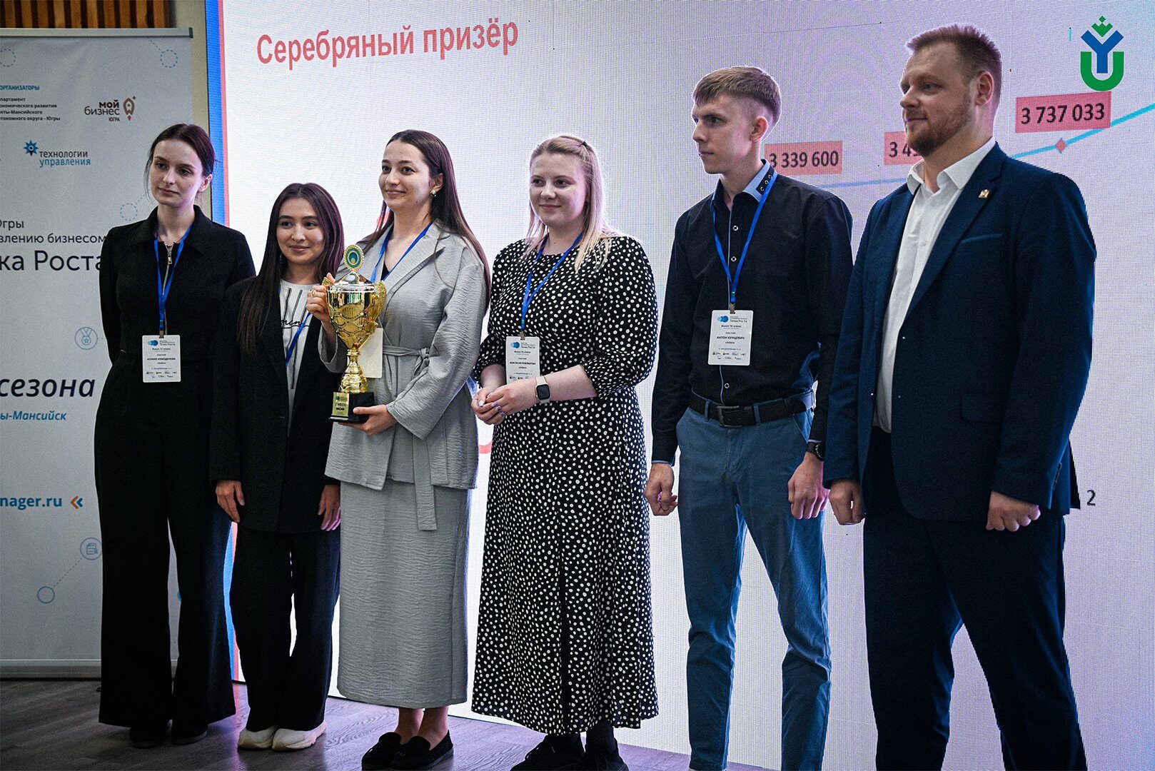 «Все организации - не только государственного, но и частного сектора - вовлечены в «Точку роста». Финалистов Кубка Югры вы можете встретить среди руководителей как государственной службы, так и крупных коммерческих компаний», - подчеркнул заместитель директора Института государственной службы и управления РАНХиГС, советник губернатора Югры Вячеслав Шоптенко. Он также отметил, что поздравить участников пришла одна из самых долго участвующих в чемпионате команд – выпускники ЮГУ Руслан Богордаев, руководитель проекта Центра управления изменениями Регионального института управления, и Александр Деменко, директор Департамента государственной гражданской службы, кадровой политики и профилактики коррупции Югры. Напутствовать победителей пришёл и гендиректор Фонда поддержки предпринимательства Югры «Мой Бизнес» Андрей Зубарев, который также является выпускником ЮГУ.