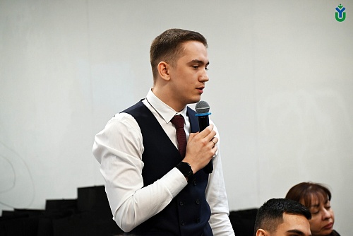 В частности, студент 4 курса ЮГУ Илья Гуров рассказал об историко-патриотическом клубе «Герои былых времён», с которым наши студенты стали лауреатами Российской национальной премии «Студент года – 2022». Руководитель клуба поблагодарил университет за всестороннюю поддержку, а также наставника студентов – преподавателя Наталью Харину.