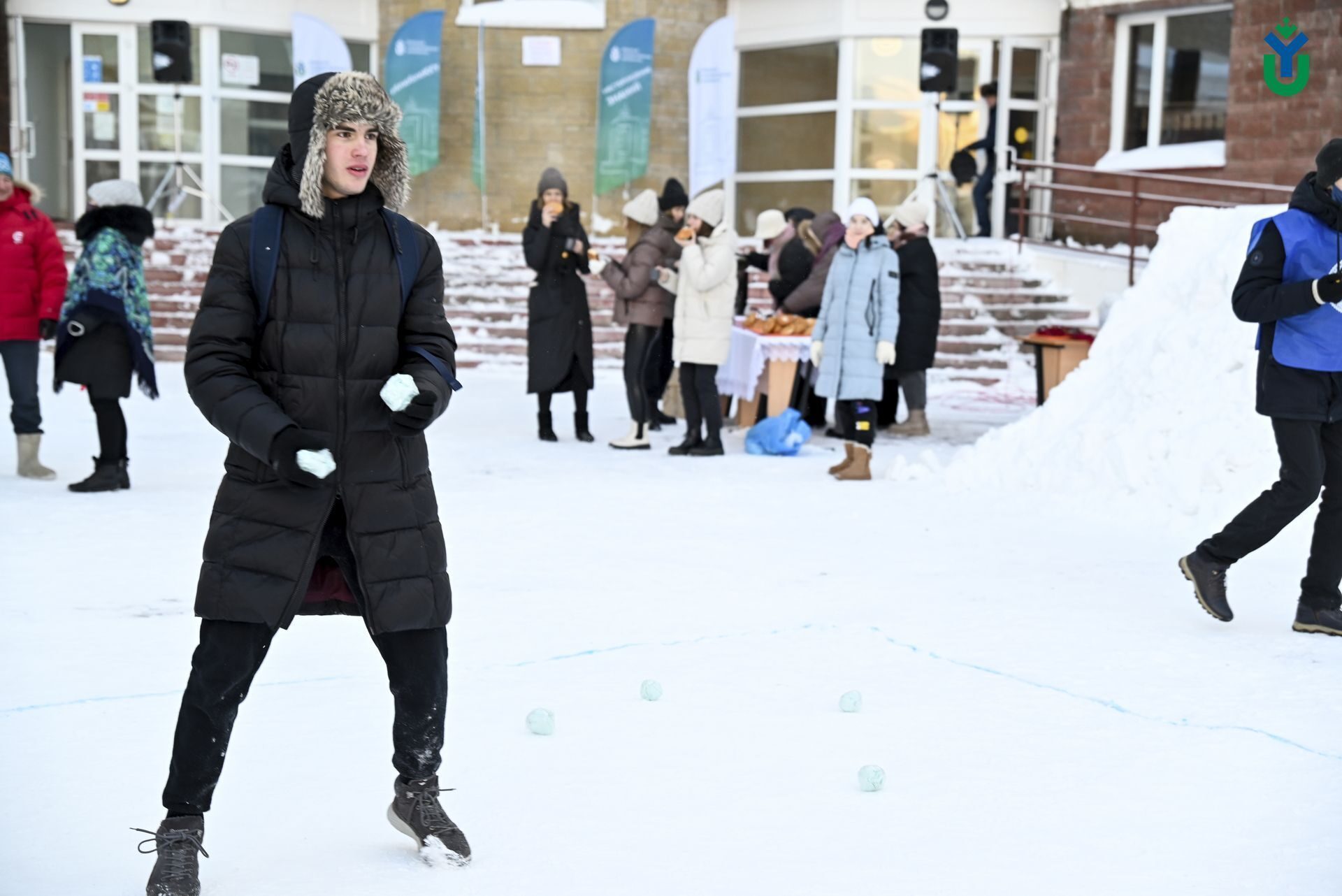 Празднование главного студенческого события страны продолжилось шуточными спортивными соревнованиями между студенческими командами: снежная битва, футбол в валенках, гонки на тюбинге. Ну а тем, кто замёрз, было предложено угоститься горячим чаем с аппетитной выпечкой. Завершилось мероприятие зажигательными танцевальными флешмобами.