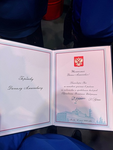 «Молодой Гвардии» Данилу Гордееву Благодарственное письмо Президента России Владимира Путина за активное участие в работе по подготовке и проведению выборов Президента 2024 года .