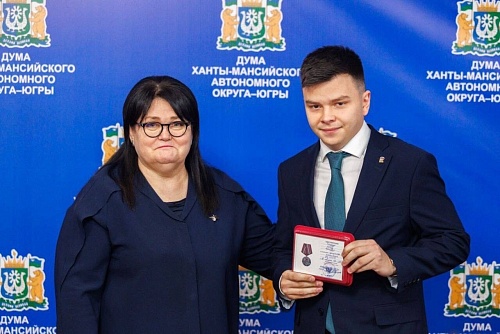 Наталья Западнова наградила медалями за волонтерскую деятельность в зоне специальной военной операции «Волонтер России» магистрантов 2 курса направления «Юриспруденция», членов Ханты-Мансийского регионального отделения