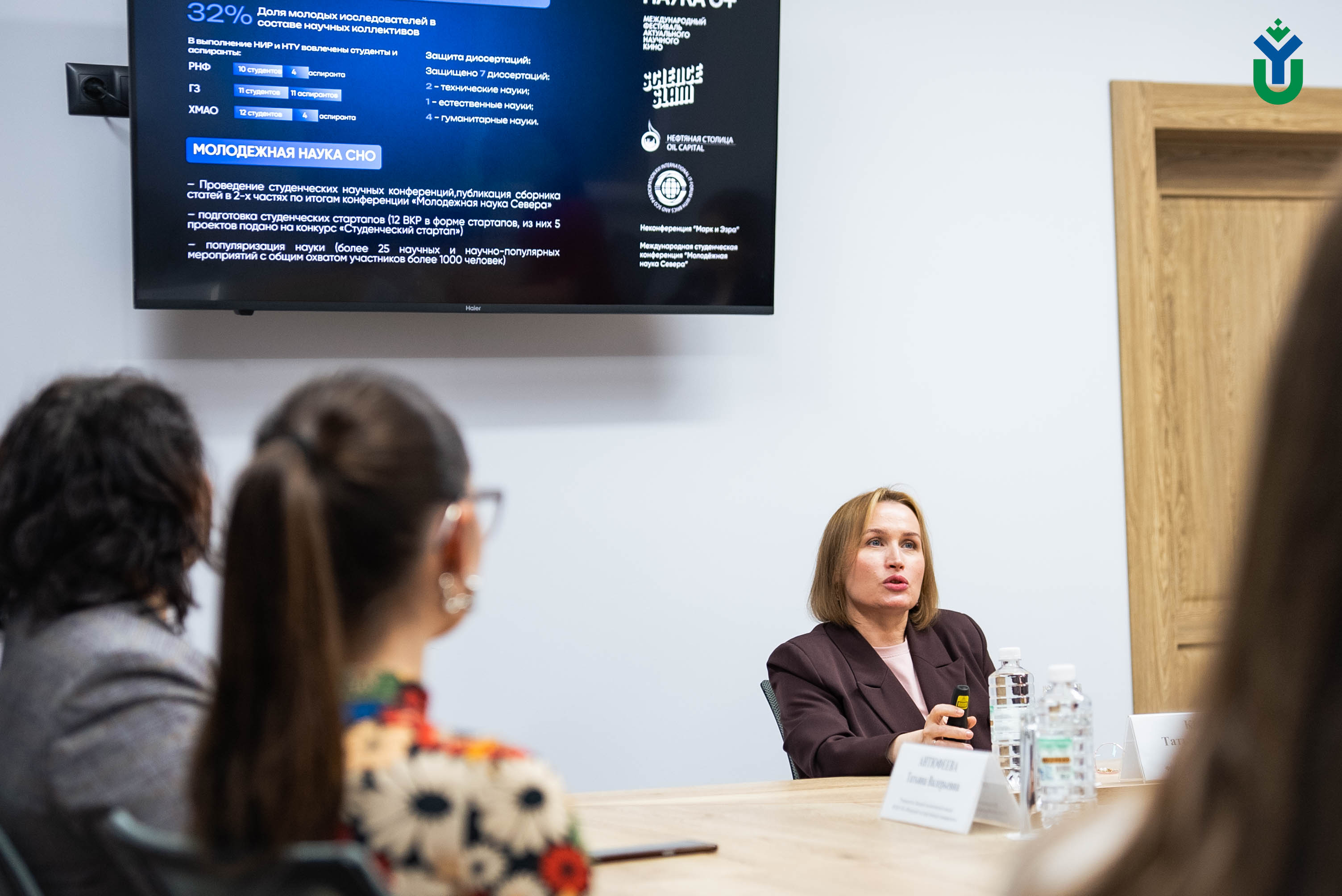 Отправной точкой путешествия студентов по миру знаний и культуре Югры стала их встреча с проректором по образовательной деятельности ЮГУ Татьяной Костылевой. Татьяна Александровна рассказала гостям про университет, научно-образовательную деятельность, возможности, которые вуз предоставляет обучающимся. По итогу презентации, ребята смогли задать интересующие их вопросы. Особый интерес вызвала международная деятельность, перспективы развития студентов в нефтяной сфере, а также обновление материально-технической базы и инфраструктуры ЮГУ.