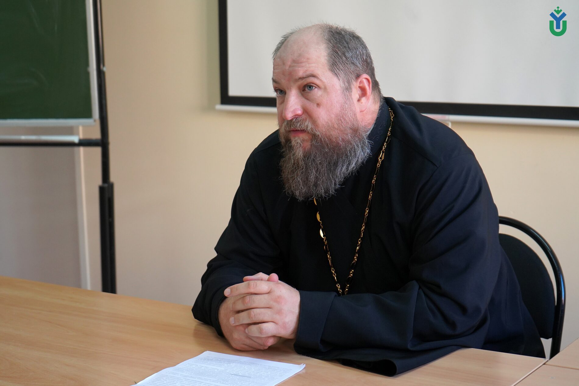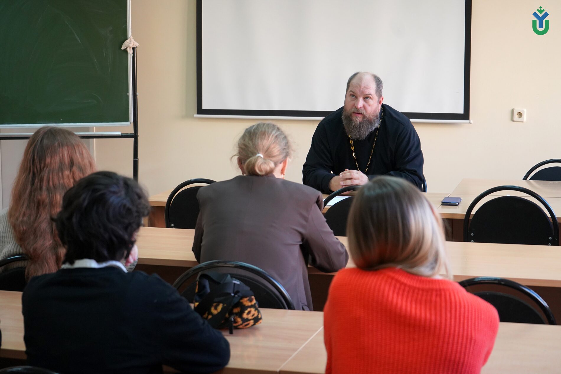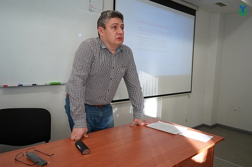 Вторая дискуссионная площадка была посвящена теме «Освещение контента религиозной направленности» для студентов направления «Журналистика», которую провел Тарасий Борозенец, клирик храма иконы Божией Матери «Знамение» города Ханты-Мансийска и доцент кафедры истории и философии ЮГУ.