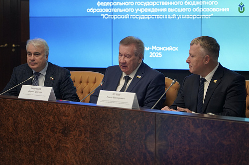 В день проведения «Выпускного-2025» в Югорском государственном университете состоялось очередное заседание Попечительского совета вуза. Мероприятие прошло под председательством Председателя Думы Югры Бориса Хохрякова. На повестке дня были рассмотрены вопросы реализации семейной политики в образовательной организации, поддержки участников СВО и их детей, обучающихся в ЮГУ, а также механизмы содействия трудоустройству выпускников.