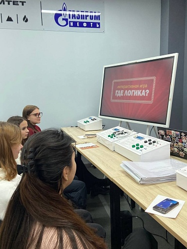 Диалог с Ксенией подходит к концу. И вот уже озвучивают победителей, вручают подарки участникам. Ведущие прощаются со школьниками, и волонтёры ведут их на следующую площадку — «МузЛаб» от Высшей нефтяной школы и Высшей экологической школы, где уже нынешние студенты ЮГУ рассказали о своих направлениях, показали видеоролики, отметили сильные стороны университета.