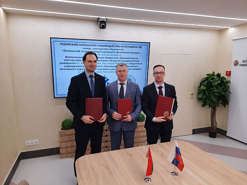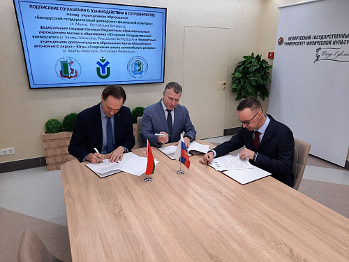 Ректор Югорского государственного университета Роман Кучин, ректор Белорусского государственного университета физической культуры Сергей Репкин и директор Спортивной школы олимпийского резерва Югры Сергей Крянин подписали трехстороннее соглашение о сотрудничестве. В ходе состоявшейся встречи стороны обсудили перспективные направления партнерства и вопросы популяризации физической культуры и спорта среди молодежи.