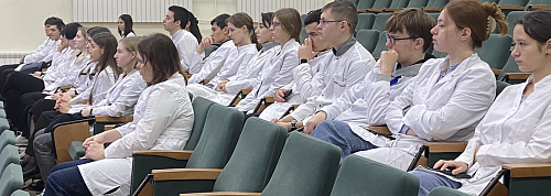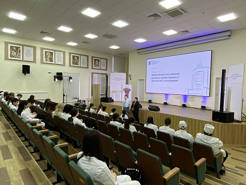 48 обучающихся 1 и 2 курсов лечебного факультета обсудили с Игорем Николаевичем традиционные ценности - духовные опоры, помогающие противостоять угрозам и способствующие осмыслению и оценке смысла человеческой жизни, установлению социальных связей и укреплению гражданского единства.