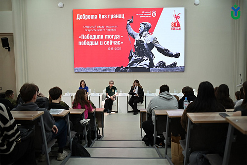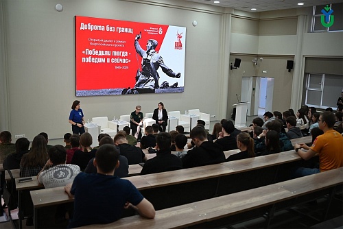 В Югорском государственном университете прошел очередной «Открытый диалог» в рамках Всероссийского проекта «Победили тогда – победим и сейчас!». Основной темой обсуждения стала «Доброта без границ: как волонтеры приближают победу России в СВО».