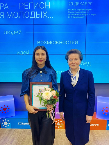 Обладателем премии губернатора в целях поощрения и поддержки талантливой молодежи в области науки и образования стала преподаватель Лянторского нефтяного техникума (филиал ЮГУ) Айым Мырзабекова. Молодой преподаватель физики и астрономии за последний год стала победителем Международного научно-исследовательского конкурса «Молодой педагог», имеет научные статьи, опубликованные в РИНЦ, является автором методических разработок.