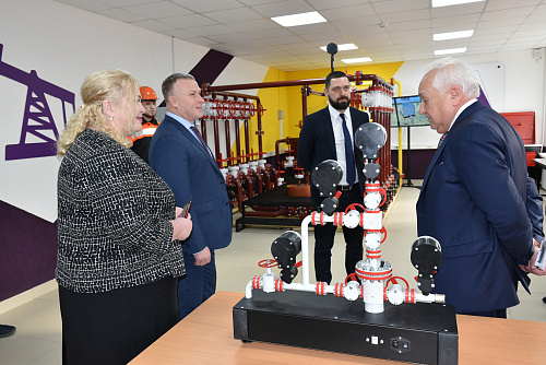 В рамках встречи состоялась презентация новых мастерских Института по компетенциям «Переработка нефти и газа» и «Добыча нефти и газа», оснащенных в рамках реализации федерального проекта «Молодые профессионалы» национального проекта «Образование».