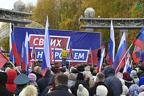 В рамках митинга также прошёл сбор гуманитарной помощи. Жители города принесли продукты питания, предметы первой необходимости. К собравшимся обратились представители общественности Ханты-Мансийска.