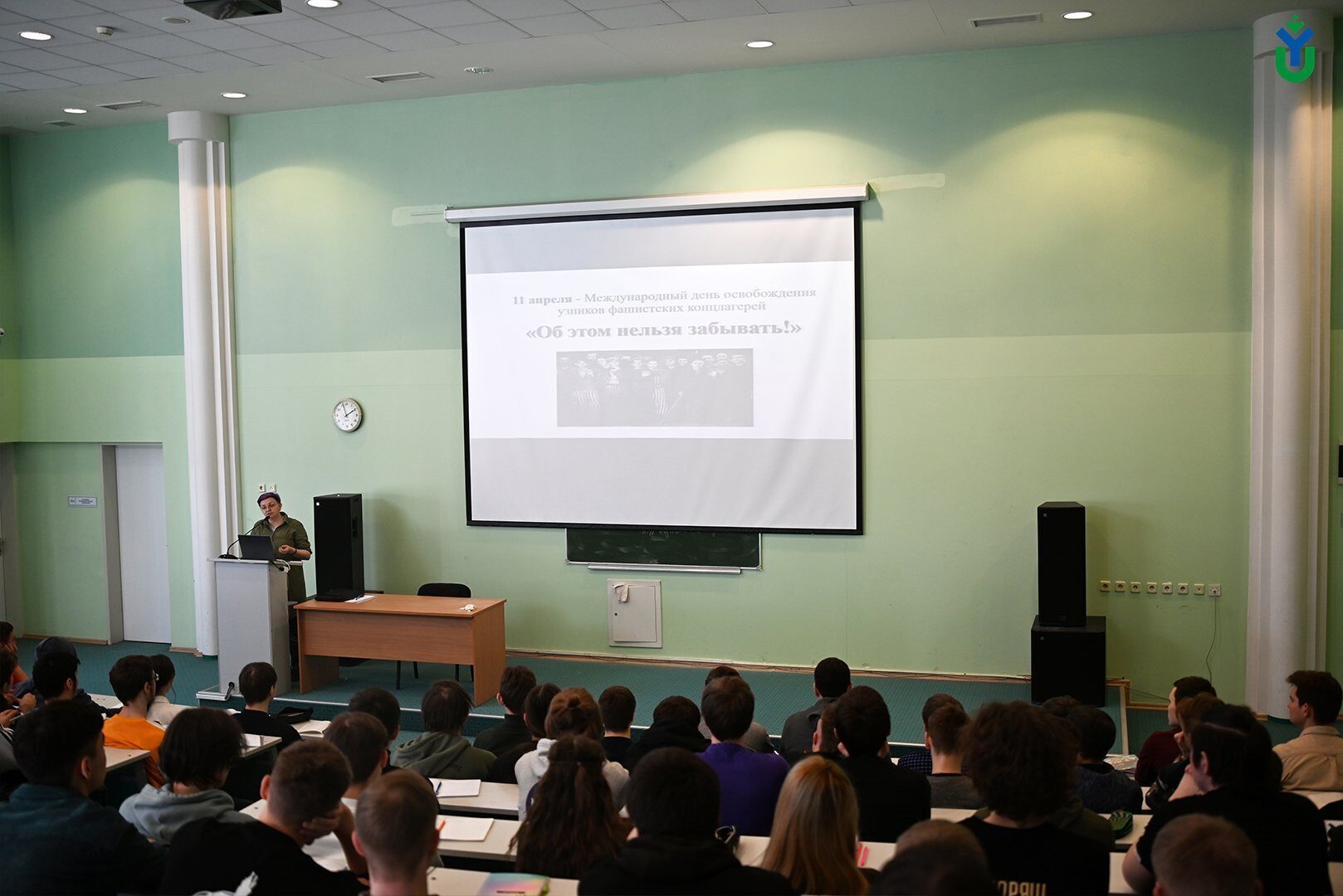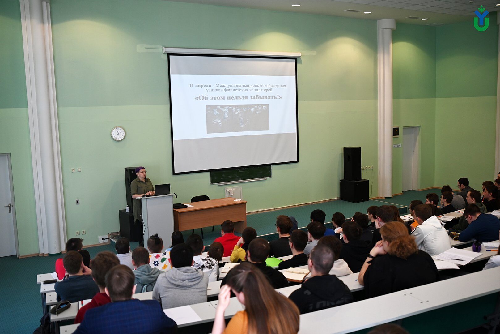 Историческую лекцию для студентов первого курса провела доцент Высшей школы гуманитарных наук ЮГУ Наталья Харина. Занятие приурочено к Международному дню освобождения узников фашистских концентрационных лагерей. Эта памятная дата ежегодно отмечается во всём мире 11 апреля. На лекции студентам рассказали о том, как появлялись и функционировали «лагеря смерти», какие зверства там творились. Студенты также смогли познакомиться с фотохроникой. Так, на одной из фотографий первокурсники увидели освобождённых узников Бухенвальда, одного из самых крупных концлагерей нацистской Германии.