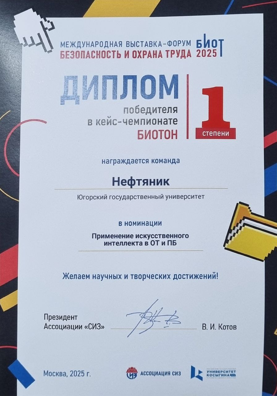 Девушки презентовали проект «Искусственный интеллект как инструмент регистрации и анализа опасных действий и условий при работах повышенной опасности». Он основан на глубоком анализе проблемы и разработке инновационного решения, которое можно внедрить в реальный производственный процесс для значительного повышения уровня безопасности работников.