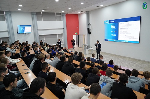 Обучающимся рассказали о взаимодействии с ссузами региона, познакомили с карьерными перспективами в компании, а также показали презентационный фильм о деятельности ООО «Газнром трансгаз Югорск».