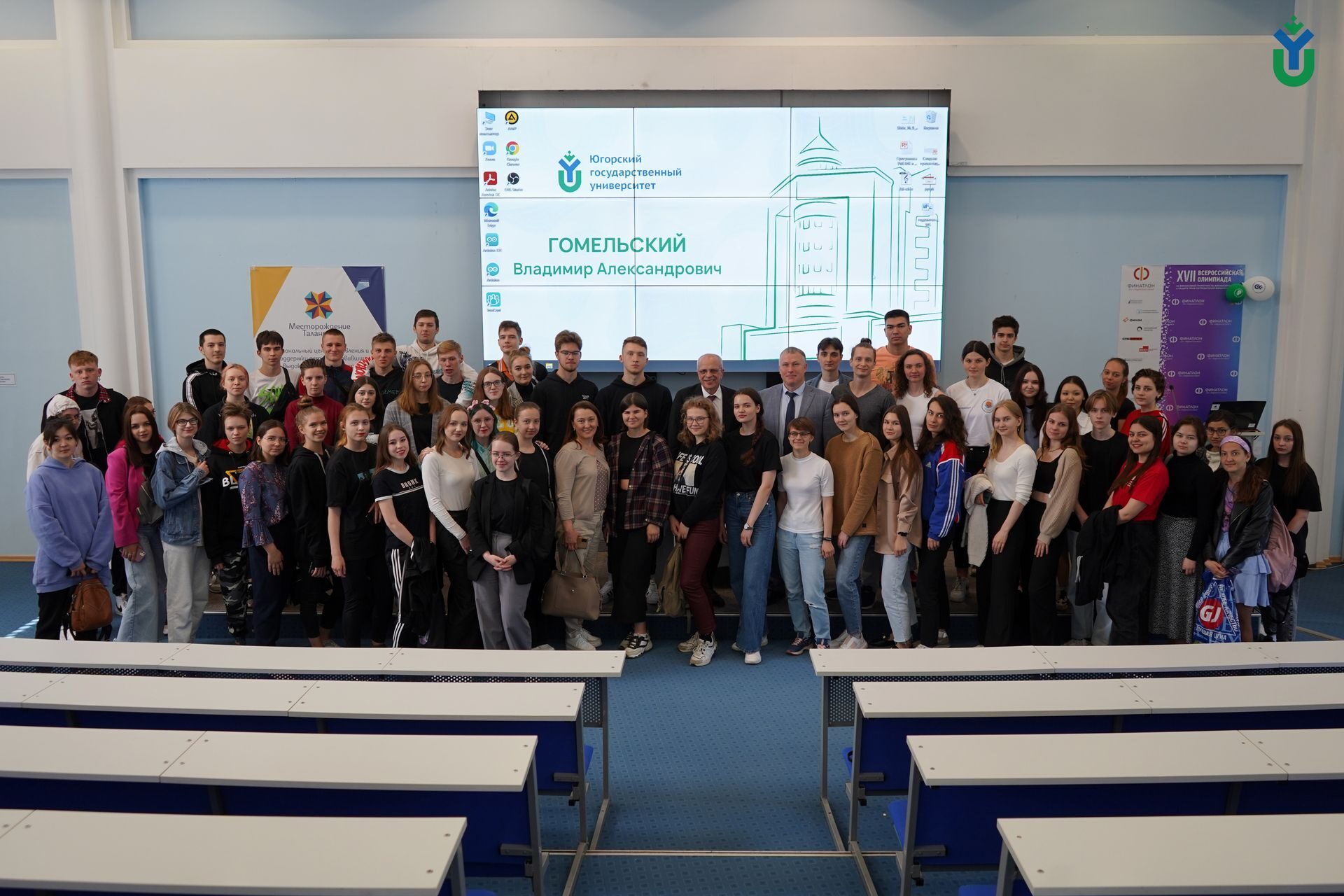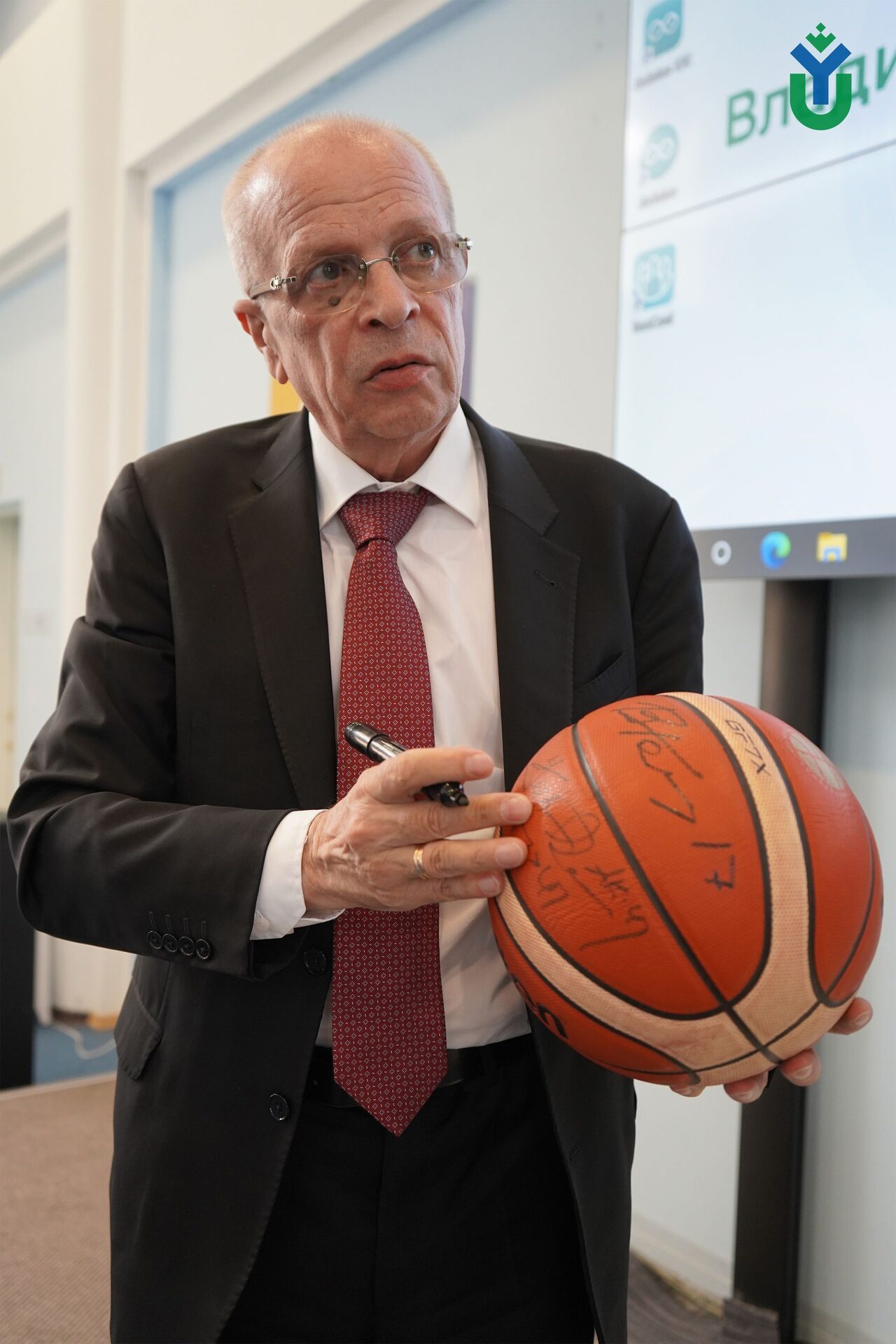 Встреча прошла в дружественной атмосфере в формате открытого диалога, где обучающиеся смогли задать интересному гостю вопросы, касающиеся баскетбола и особенностей работы телекомментатора в прямом эфире. Владимир Александрович рассказал, что в Ханты-Мансийске уже в третий раз – прилетел в гости, ранее же приезжал комментировать чемпионат мира по биатлону.
