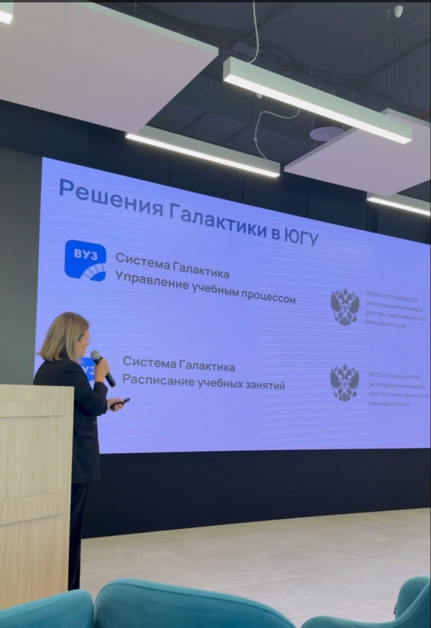 Любовь Владимировна представила доклад, в котором рассказала о внедрении и развитии цифровизации учебного процесса в вузе на основе решений корпорации «Галактика».