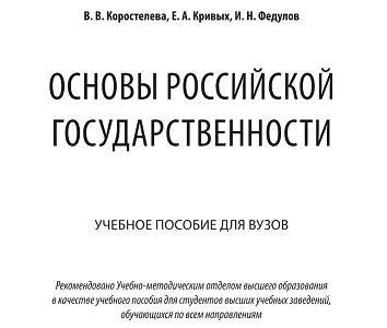 В издательстве «Юрайт» вышло пособие по курсу «Основы российской государственности» с грифом учебно-методического объединения вузов. Соавторами пособия выступают профессор и доцент Высшей школы гуманитарных наук ЮГУ Игорь Федулов и Виктория Коростелева. Курс адресован студентам младших курсов высших учебных заведений России, обучающихся по всем направлениям.