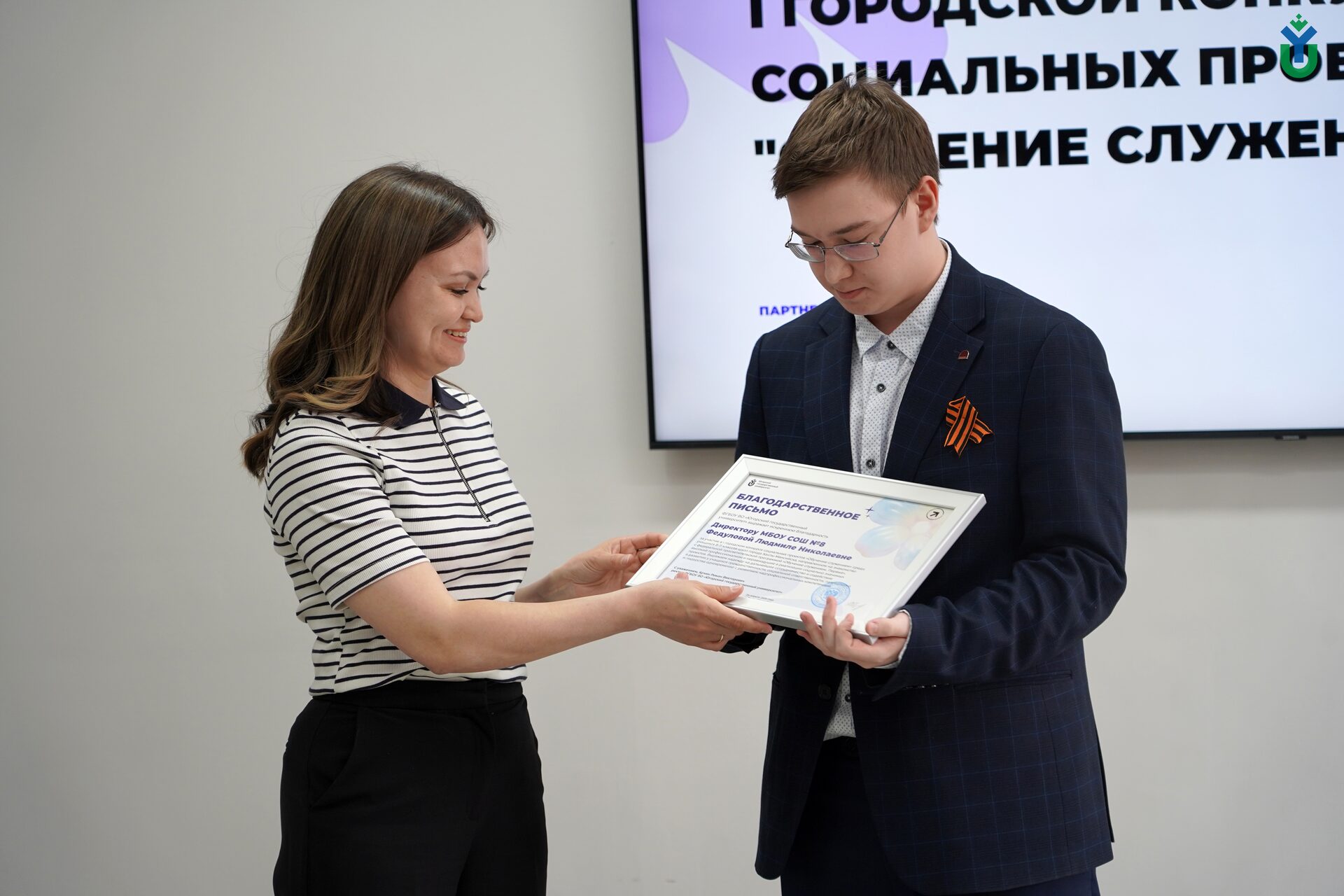 В рамках финального этапа конкурса состоялась церемония вручения благодарственных писем. Так, за высокий профессионализм и неравнодушие в реализации социально значимых проектов с надеждой на дальнейшее сотрудничество и содействие в развитии у учащихся гражданственности, социальной ответственности, патриотизма и лидерства одновременно с развитием надпрофессиональных компетенций, благодарственным письмом была отмечена директор СОШ №3 Галина Кузнецова.