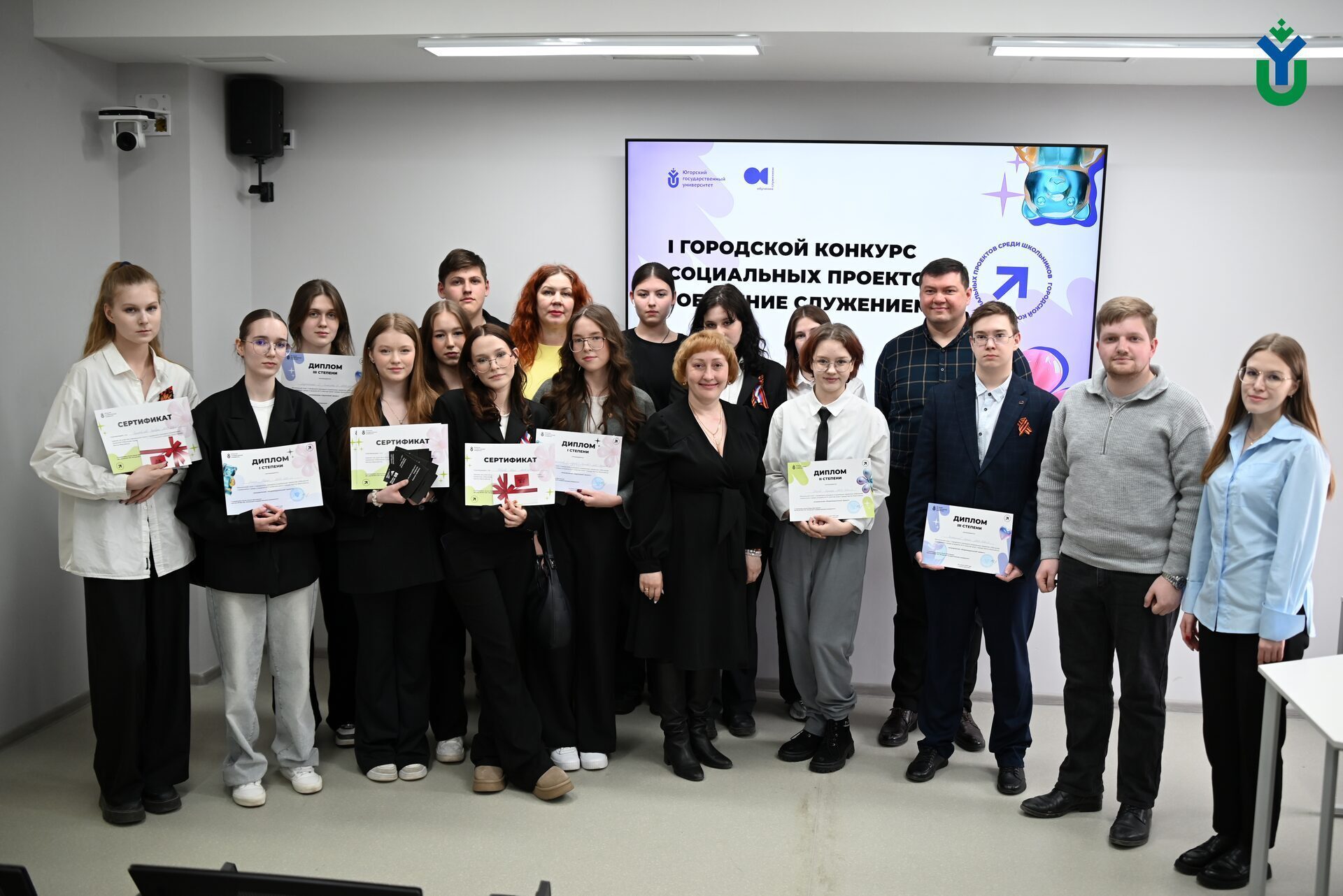 В Югорском государственном университете прошел финальный этап I городского конкурса социальных проектов «Обучение служением» среди учащихся 8-11 классов школ города Ханты-Мансийск. Проект направлен на знакомство с федеральной просветительской программой «Обучение служением.Первые» и формирование навыков социального проектирования.