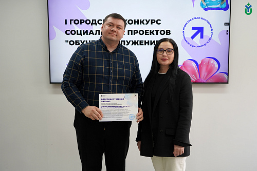 - За организацию проектной работы со школьниками и подготовку к участию в I городском конкурсе социальных проектов «Обучение служением» среди учащихся 8-11 классов школ города Ханты-Мансийск, направленном на знакомство с федеральной просветительской программой «Обучение служением. Первые», высокий профессионализм и неравнодушие в реализации социально значимых проектов, благодарственные письма вручили старшему преподавателю ЮГУ Екатерине Хайдуковой и старшему преподавателю Александру Портных.