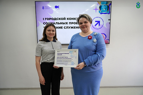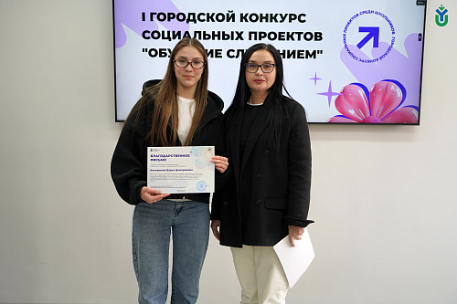За организацию проектной работы со школьниками и подготовку к участию в I городском конкурсе социальных проектов «Обучение служением» среди учащихся 8-11 классов школ города Ханты-Мансийск, направленном на знакомство с федеральной просветительской программой «Обучение служением.Первые», высокий профессионализм и неравнодушие в реализации социально значимых проектов, благодарственное письмо вручили учителю английского языка и куратору первичного отделения «Движения первых» в СОШ №3 Ольге Старцевой.