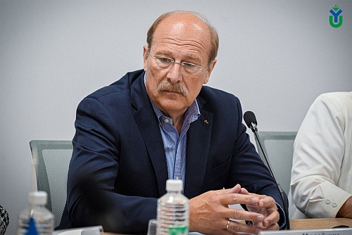 Ректор ЮГУ Роман Кучин, в свою очередь, заметил, что университет и РАБО продолжают хорошую традицию, проводя круглый стол в рамках такого масштабного мероприятия, которое проходит на Югорской земле. «Вопросы цифровизации касаются всех сторон нашей жизни. И непосредственно нашей профессиональной деятельности – образования. Много было испытаний системы образования в пандемию. Мы опробовали разные дистанционные технологии. Сейчас всё больше курсов имеет возможность реализовываться онлайн и с помощью других интерактивных форматов. Здесь должен быть порядок, должно быть качество, соблюдены все условия, должна не пострадать познавательная активность слушателей и студентов. Мы должны получить тот интерактив, где будет активная позиция каждого студента по добыче знаний», - подчеркнул Роман Викторович.