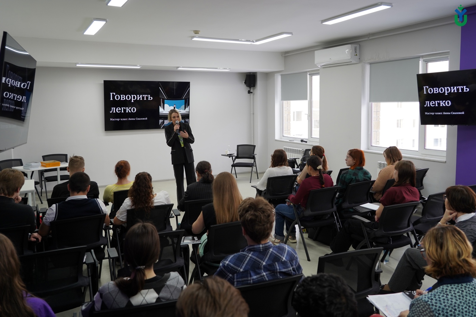 В Югорском государственном университете прошел мастер-класс по ораторскому мастерству, который провела харизматичный спикер и опытный оратор Анна Свалова. Участники погрузились в основы публичных выступлений и на практике опробовали приемы, которые делают речь четкой и уверенной.