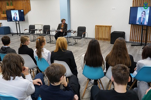 Руководитель образовательной программы «Журналистика», доцент Высшей школы гуманитарных наук ЮГУ Илья Тарасов организовал для школьников 8-9 классов г. Ханты-Мансийска профориентационную встречу с Юлией Вотинцевой – известной ведущей новостей телеканала РЕН-ТВ.