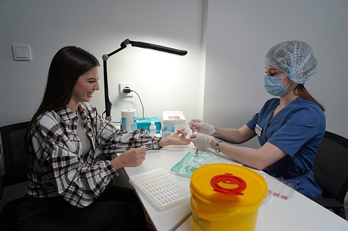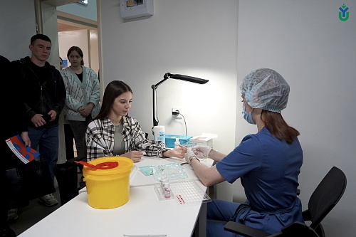По завершении лекционной части мероприятия студенты получили уникальную возможность сдать кровь и узнать свою группу крови.