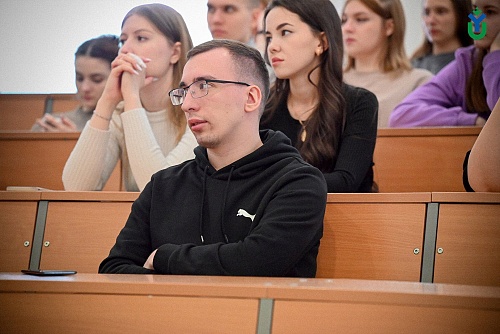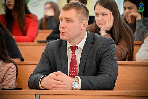 Вчера в Югорском государственном университете прошла встреча студентов с Денисом Скакуновым – выпускником ЮГУ 2020 года Юридического института, госслужащим аппарата губернатора Югры, дважды участником СВО, на данный момент сотрудником, осуществляющим отбор граждан для прохождения военной службы по контракту.
