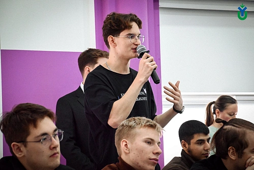 Позже студенты смогли задать свои вопросы ректору ЮГУ Роману Кучину и выпускникам университета. Так, Роман Викторович рассказал о своей студенческой жизни. Валерий Голованчук раскрыл секреты методики «Искать счастье в мелочах». Камилла Баимова рассказала, кем видит себя через 10 лет. Юрий Слюсарь поделился своим опытом участия в гуманитарных миссиях в зоне СВО. На встрече также напомнили, что в России 2025 год объявлен Годом защитника Отечества в целях сохранения исторической памяти, в ознаменование 80-летия Победы в Великой Отечественной войне 1941-1945 годов, в благодарность ветеранам и признавая подвиг участников специальной военной операции.