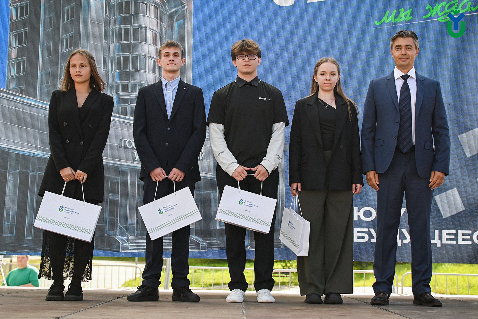 Также новоиспечённых студентов пришли поздравить почётные гости. Так, председатель Думы Югры, председатель Попечительского совета ЮГУ Борис Хохряков отметил, что для первокурсников начинается новая глава жизни: «Вы вливаетесь в большой и дружный коллектив ЮГУ. В университете созданы все условия для обучения. Также будет и внеучебная деятельность: вы сможете заняться спортом, наукой, волонтёрством. Я желаю успехов вам на этом пути. ЮГУ – это флагман высшего образования Югры. Здесь лучшие преподаватели, лучшие знания, которые получают студенты. Здесь глубоко занимаются научными разработками. То, что вы является студентами этого прекрасного университета, уже является достижением. В этом году конкурс на некоторые специальности достигал более 20 человек на место. Абитуриенты поступали с очень высокими баллами по ЕГЭ».