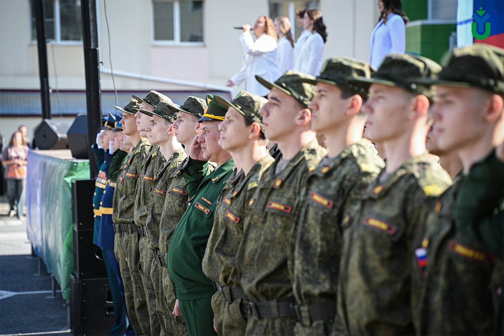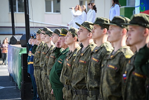 Отметим, что в этом году по программам высшего образования на бюджетные места поступили 915 студентов, на платные - 382. Для ребят солисты студии Vinill и курсанты ВУЦ исполнили гимн России.