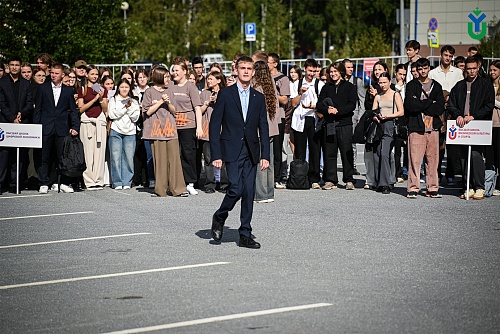«Поздравляю вас с важным праздником вашей жизни – с Днём знаний. Для первокурсников это особенно трепетный момент. Потому что сейчас вы вступаете в новый этап, который, наверно, будет самым главным. Именно в это время вы получаете знания, встречаете друзей, создаете студенческие семьи. Это время возможностей, в которое вы можете попробовать себя во всех направлениях. И наш университет, город и округ создают все условия для этого. Хочу пожелать вам пытливости, максимально стараться проявить себя и достичь высоких результатов» - обратился к первокурсникам ректор ЮГУ Роман Кучин.