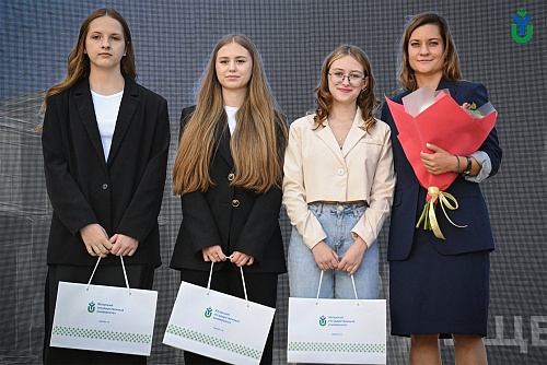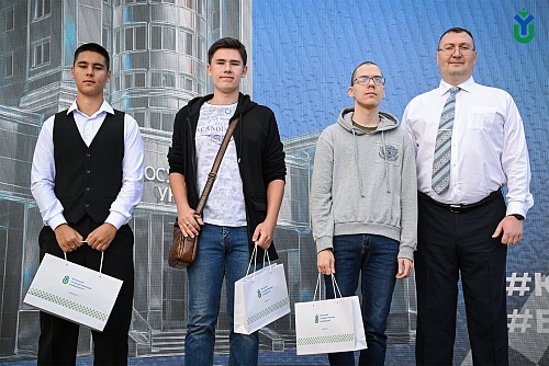В День знаний по традиции прошло чествование первокурсников, которые набрали наибольшее количество баллов по итогам ЕГЭ. Это студенты Высшей экологической школы - Екатерина Галичина, Анастасия Богданова и Анна Корепина, Высшей школы цифровой экономики - Максим Масолов, Ярослав Пятков, Карина Габидуллина и Дарья Удалова, Высшей школы физической культуры и спорта - Иван Кривенко, Екатерина Ниясова и Анастасия Кувшинникова, Высшей школы гуманитарных наук - Юлия Картунова, Елена Вайхель и Сабина Меликова, Высшей школы права - Мария Петрова, Полина Речкина и Софья Кузнецова, Высшей нефтяной школы - Мария Мизина, Любовь Чистова и Антон Антонов, Инженерной школы цифровых технологий - Никита Диченский, Владислав Гильмиянов и Ксения Волнянская, Политехнической школы - Глеб Кулапин, Александр Беляев и Роман Шарафеев.