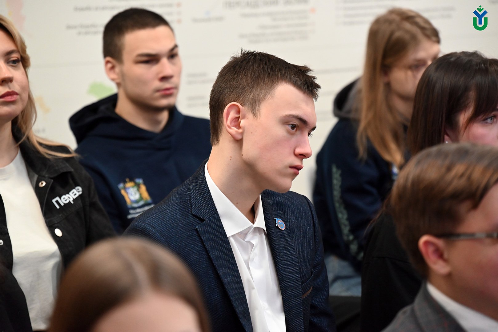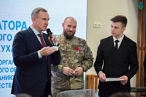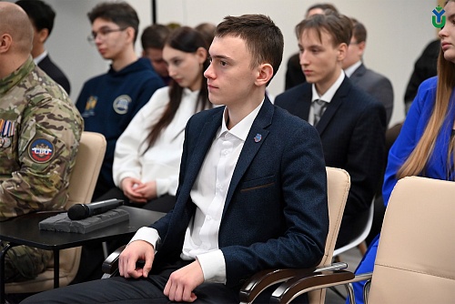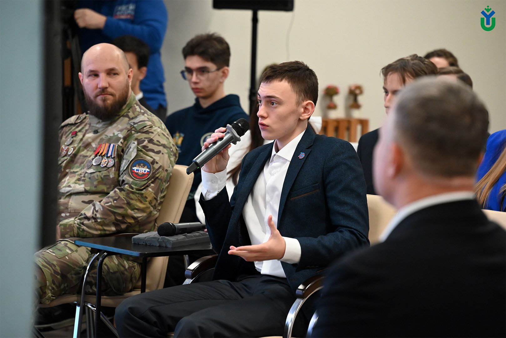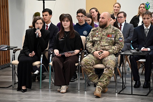 На встрече дали слово и представителям Югорского госуниверситета. Так, об участии об участии в региональном образовательном проекте «Герои Югры», работе с юнармейскими отрядами и общественной деятельности рассказал магистрант 1 курса Высшей школы права ЮГУ, участник СВО Иван Плотников. Иван Сергеевич награжден Медалью орденом «За заслуги перед отечеством» II степени с мечами и медалью «За воинскую доблесть» II степени, является руководителем филиала в Ханты-Мансийске региональной общественной организации «Ассоциация ветеранов десантных войск и войск спецназа», участник трёх этапов комплексного физкультурного мероприятия для ветеранов СВО «Герои нашего времени» (победитель и призер 1 и 2 этапов). А студент 2 курса ВШП Сергей Караблин поделился своим опытом участия в гуманитарной миссии и работе в волонтёрском штабе «Здесь СВОи». «Считаю, что участие в гуманитарных миссиях – это определённая обязанность, долг каждого гражданина. Это так плотно укоренилось в моей голове, что нужна помощь и я могу помочь, потому что, если не поеду я, то кто поедет», - отметил волонтёр.