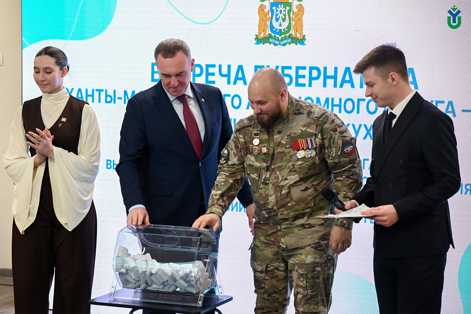 Сама встреча с выдающимися студентами округа прошла в «Точке кипения». Здесь наиболее отличившиеся студенты рассказали главе региона о своих достижениях, успешных кейса и разработках. Всего на встречу были приглашены 60 студентов из 14 образовательных организаций высшего и профессионального образования - это победители, призеры, участники студенческих конкурсов, чемпионатов профмастерства, конференций, фестивалей, участники «Движения первых», представители студенческого актива, совета обучающихся, волонтеры. 2026 год объявлен годом молодой семьи в Югре, и символично, что именно в такой тёплой обстановке на встрече с губернатором Русланом Кухаруком студент 3 курса ХМТПК сделал предложение руки и сердца своей возлюбленной прямо во время мероприятия!