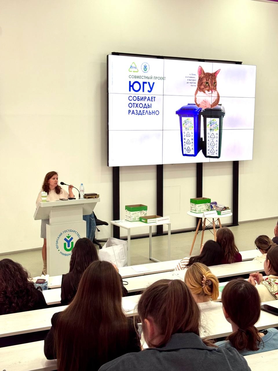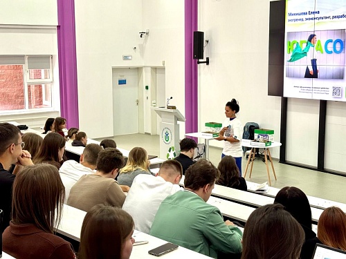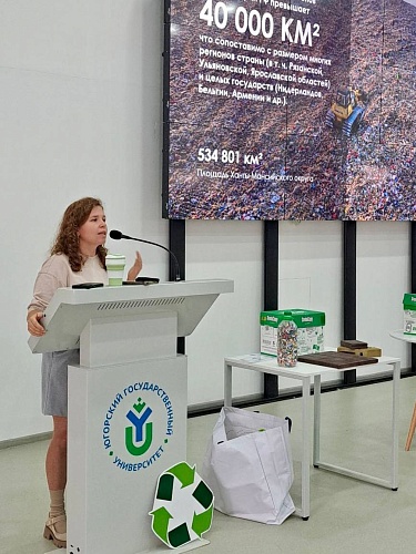 Специальным гостем вводной лекции для студентов выступила специалист по связям с общественностью АО «Югра-Экология» Юлия Юфимцева. Она рассказала студентам о принципах раздельного сбора отходов, типах перерабатываемого сырья и жизненном цикле вещей, что заложило необходимую теоретическую базу для предстоящей игры.