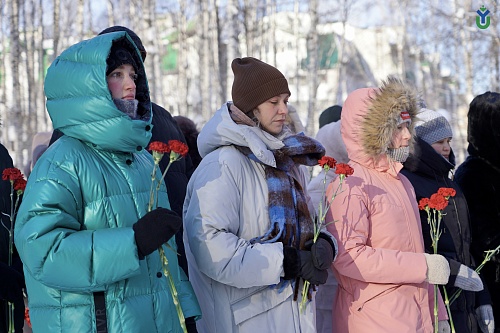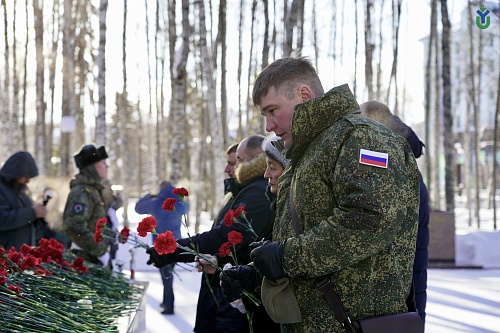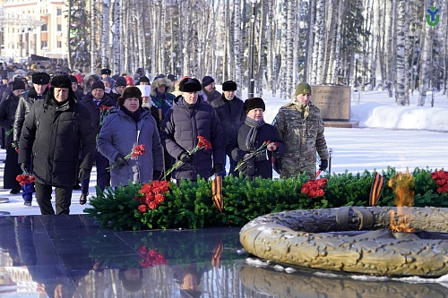 Ректорат, директора институтов и представители студенчества ЮГУ возложили цветы к Вечному огню Мемориала Славы.