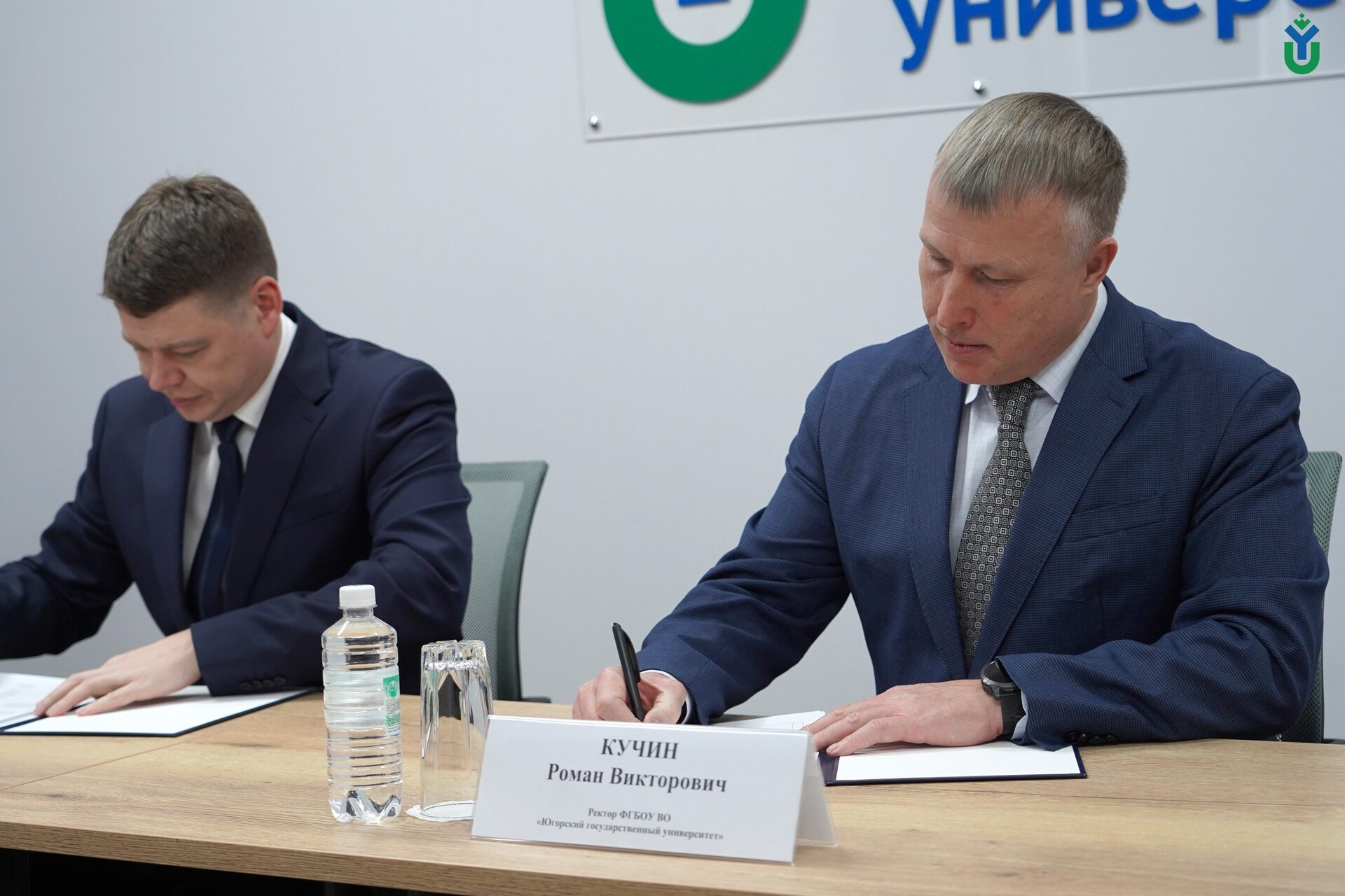 Свои подписи в документе поставили ректор ЮГУ Роман Кучин и директор Дептруда Югры Роман Белкин.