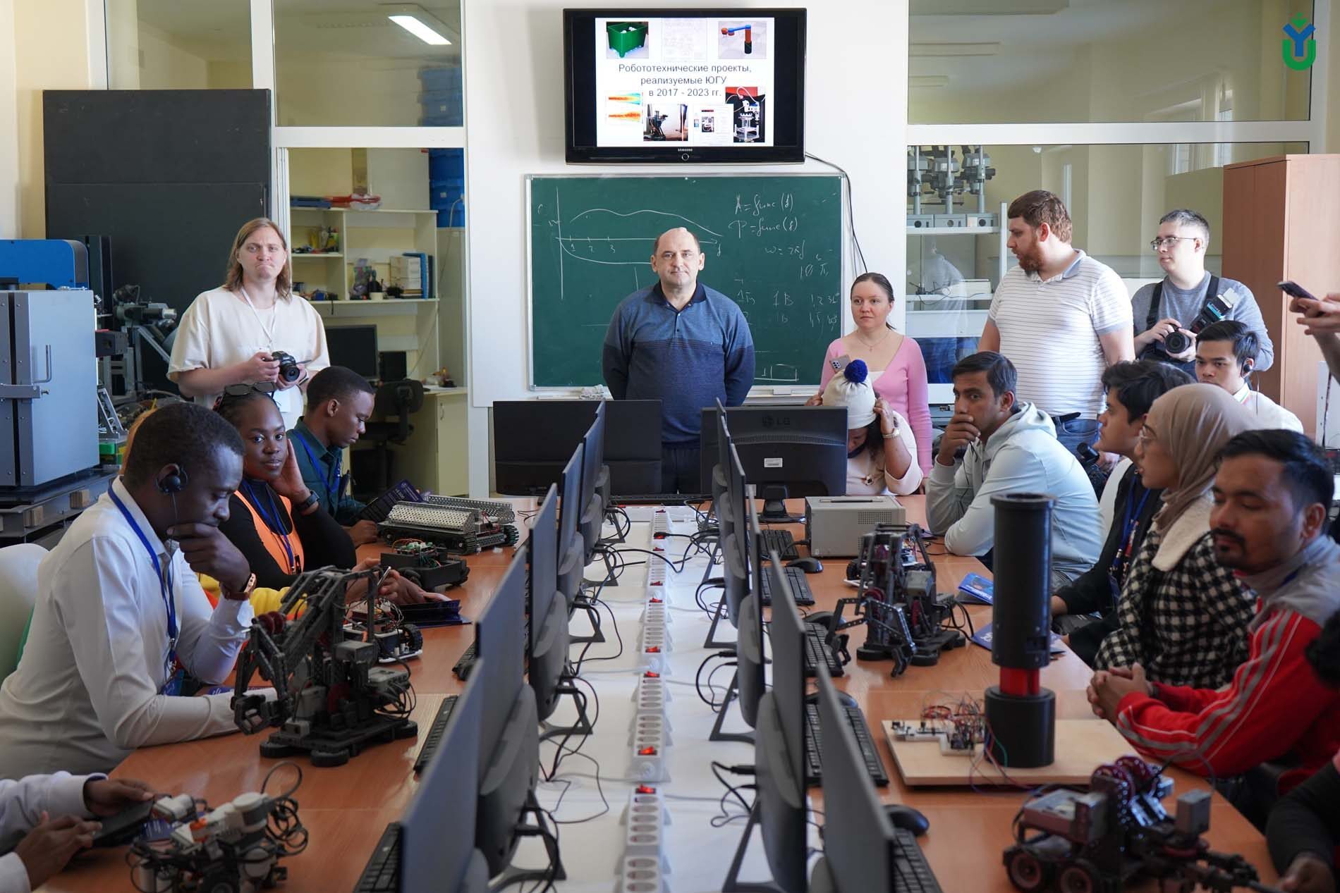 Иностранной молодёжи продемонстрировали VR-тренажёр Stud.Neft, который разработали студенты ЮГУ из компании «Невитех». О разработке иностранным гостям рассказывал гендиректор компании и студент Высшей нефтяной школы ЮГУ Кирилл Загайкевич. Далее участников познакомили с Молодёжной лабораторией геоинформатики экосистем, сотрудники которой проводят экологические исследования при помощи беспилотных летательных аппаратов, геостатистики, математики и программирования, техническими возможностями экологических лабораторий, а также разработками молодых учёных ЮГУ. Так, студенты Политехнической школы представили устройство спектрального анализа токов для защиты электросетей, а также технологии зеленой энергетики. А магистрант Высшей нефтяной школы Айханум Гаджиева демонстрировала свою разработку – инфракрасный анализатор качества трансформаторных масел. Разработка призвана увеличить срок службы трансформатора, который является важным элементом современной электроэнергетики.