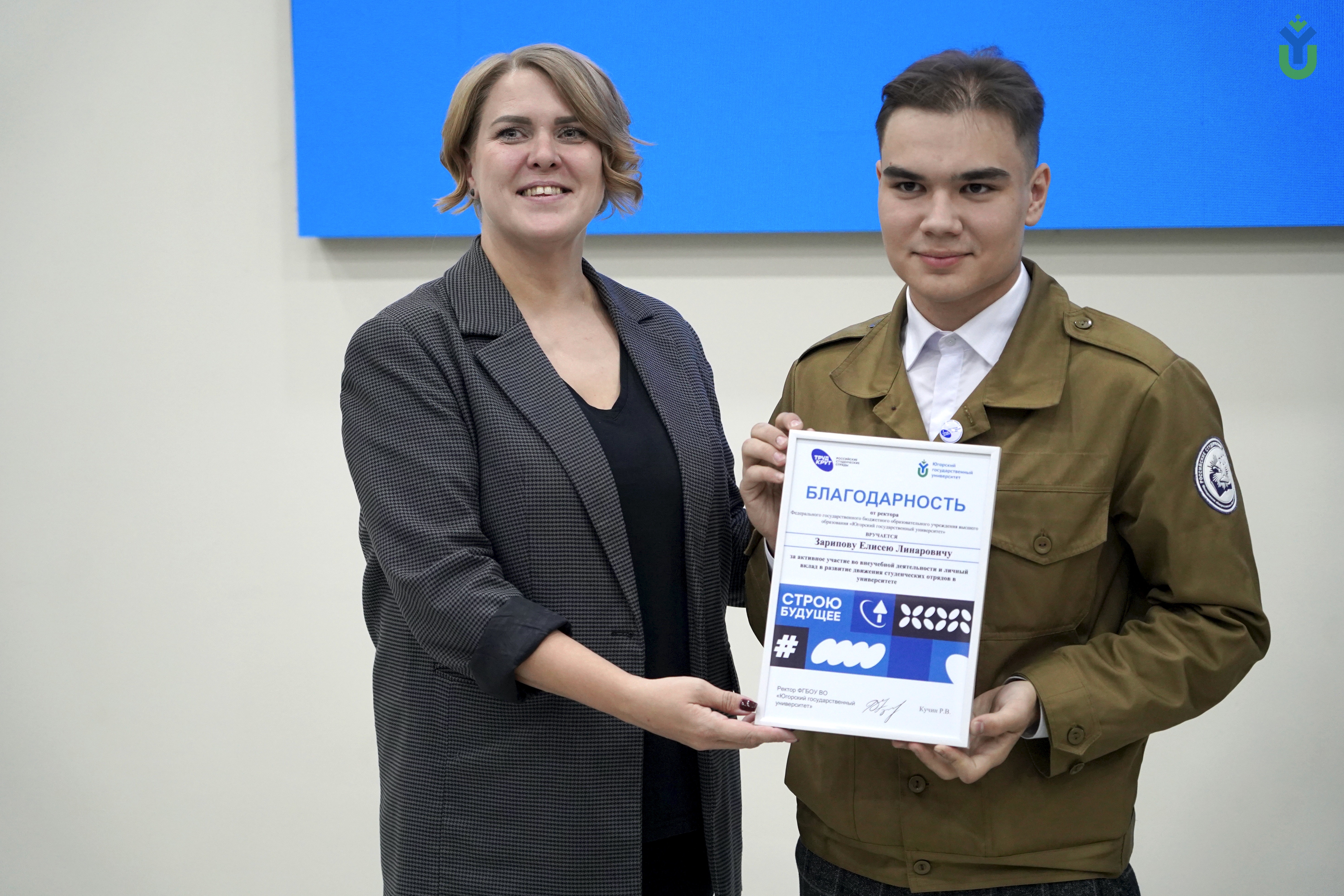 В стенах Югорского государственного университета прошло торжественное закрытие трудового семестра. Семь отрядов получили благодарственные письма и грамоты за участие в проектах. На церемонии каждый отряд представил свое название, девиз и творческий номер.