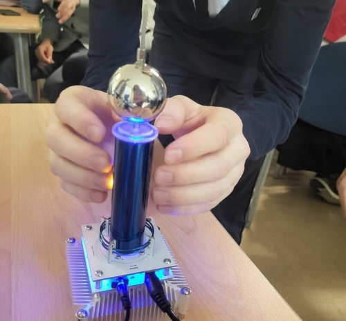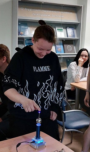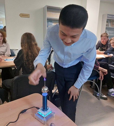 Большой интерес школьников вызвала демонстрация работы устройства «Качер Бровина», созданного студентами университета. Студент третьего курса направления «Электроэнергетика и электротехника» Никита Самойлов показал, как электричество в умелых руках способно не только обеспечить функциональные потребности, но и быть предметом для развлечения и досуга.